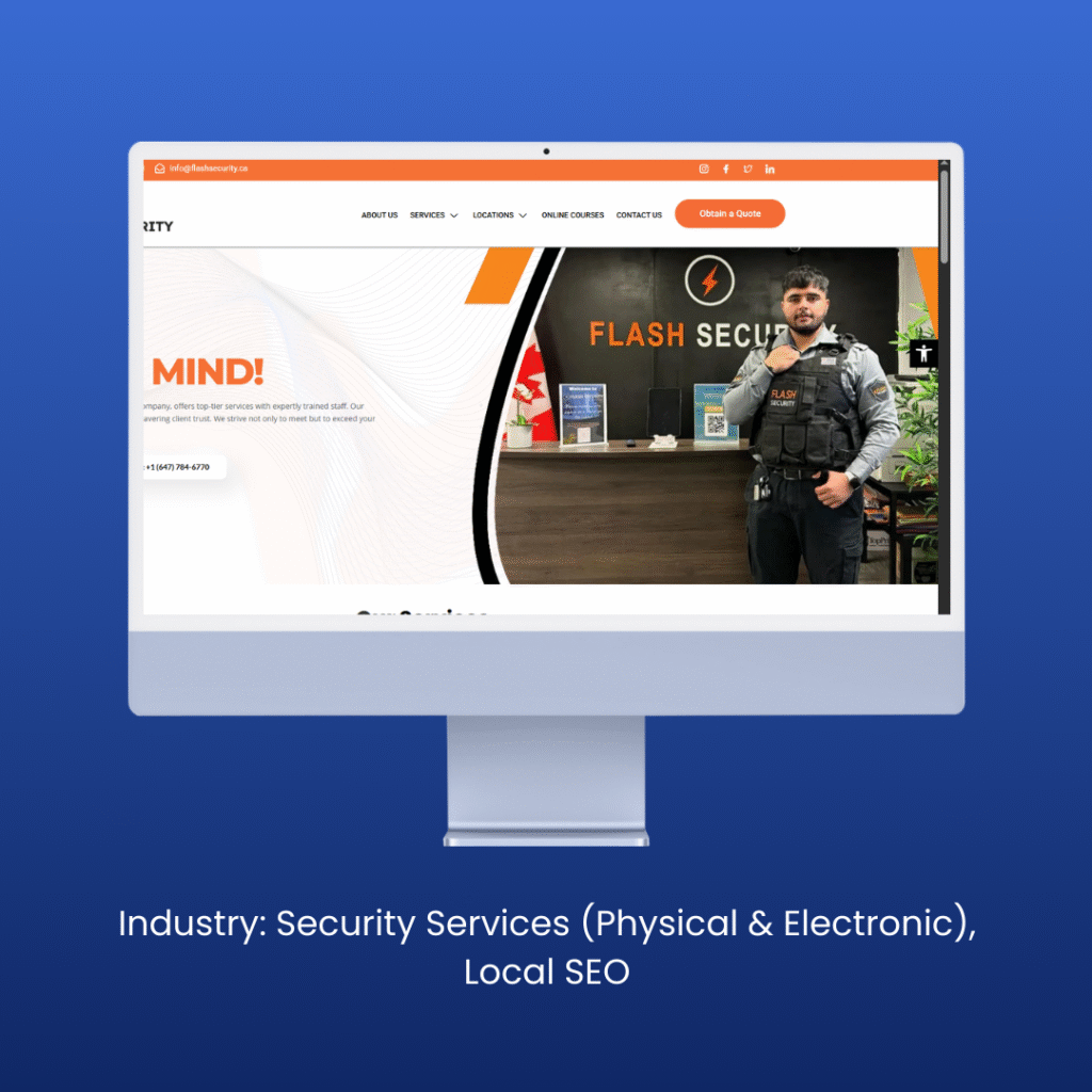 Executed the complete WordPress architecture design and technical SEO structuring for a leading Canadian security company. The core focus was on geo-targeting optimization to effectively manage and scale their dual-service portfolio across over 10 Canadian cities.